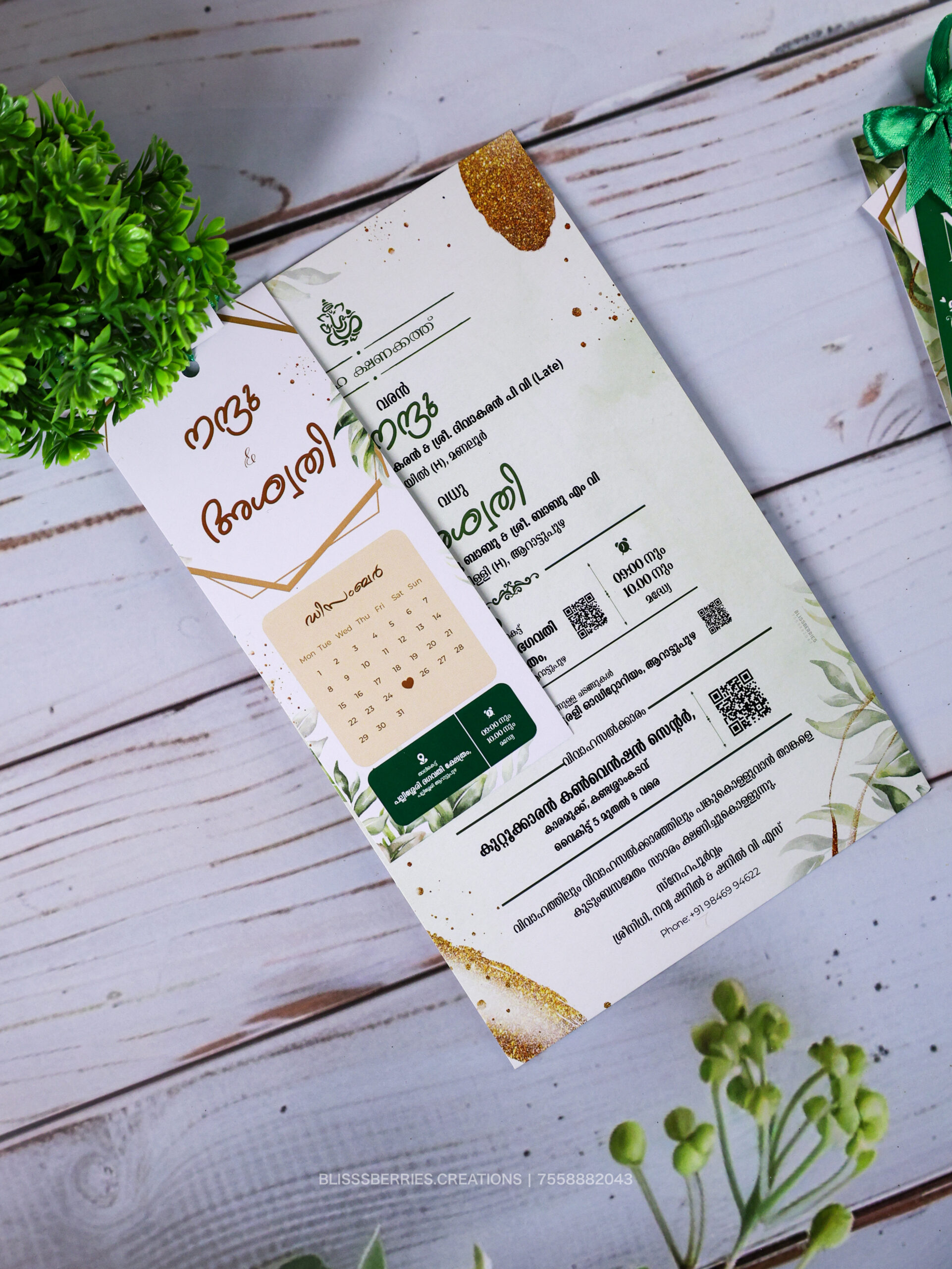 The BlissVerde Ribbon is a stylish green 3-layer wedding invitation card adorned with a beautiful ribbon accent. This elegant and vibrant design offers a layered look, perfect for couples looking to add a fresh, eco-friendly touch to their wedding invitations with premium craftsmanship.