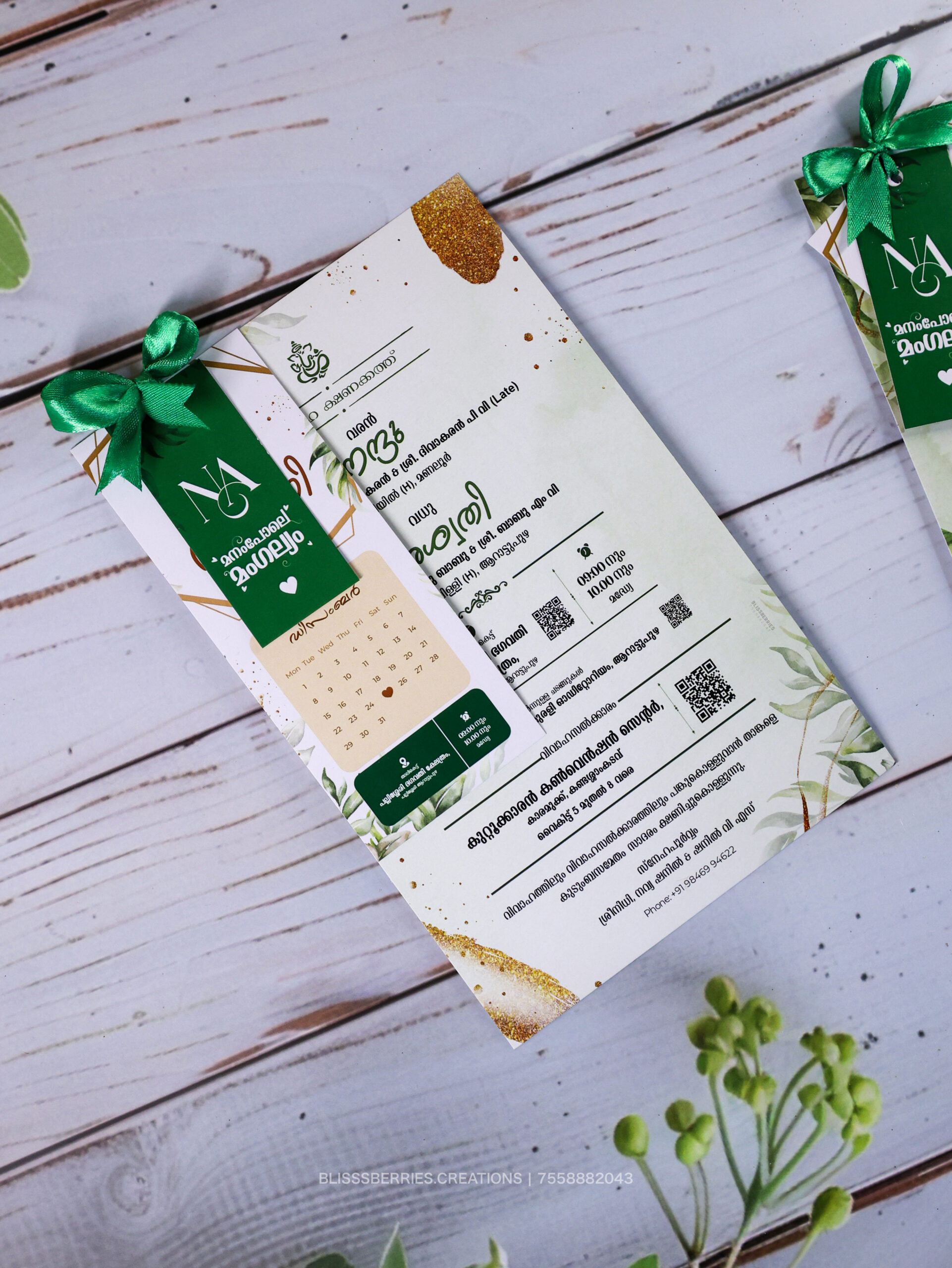 BlissVerde Ribbon – Green 3 Layer Wedding Invitation Card with Ribbon