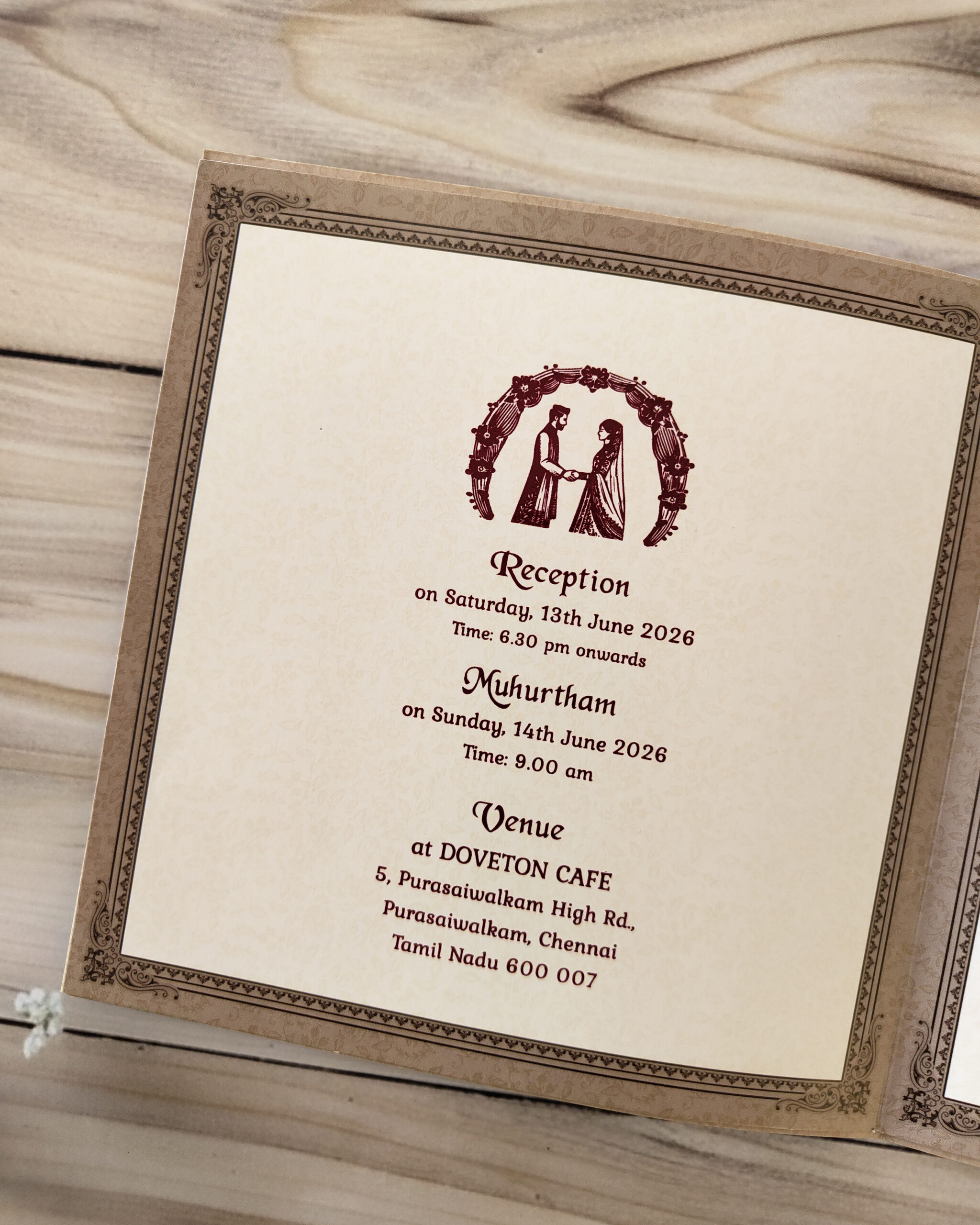 Make your celebration unforgettable with this brown floral square wedding invitation card, beautifully designed with a rich botanical motif. Paired with a matching envelope, this elegant and earthy invitation is perfect for rustic, nature-inspired, or modern wedding themes.