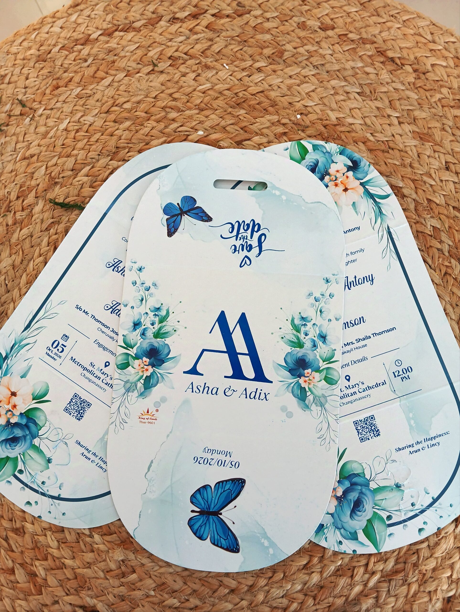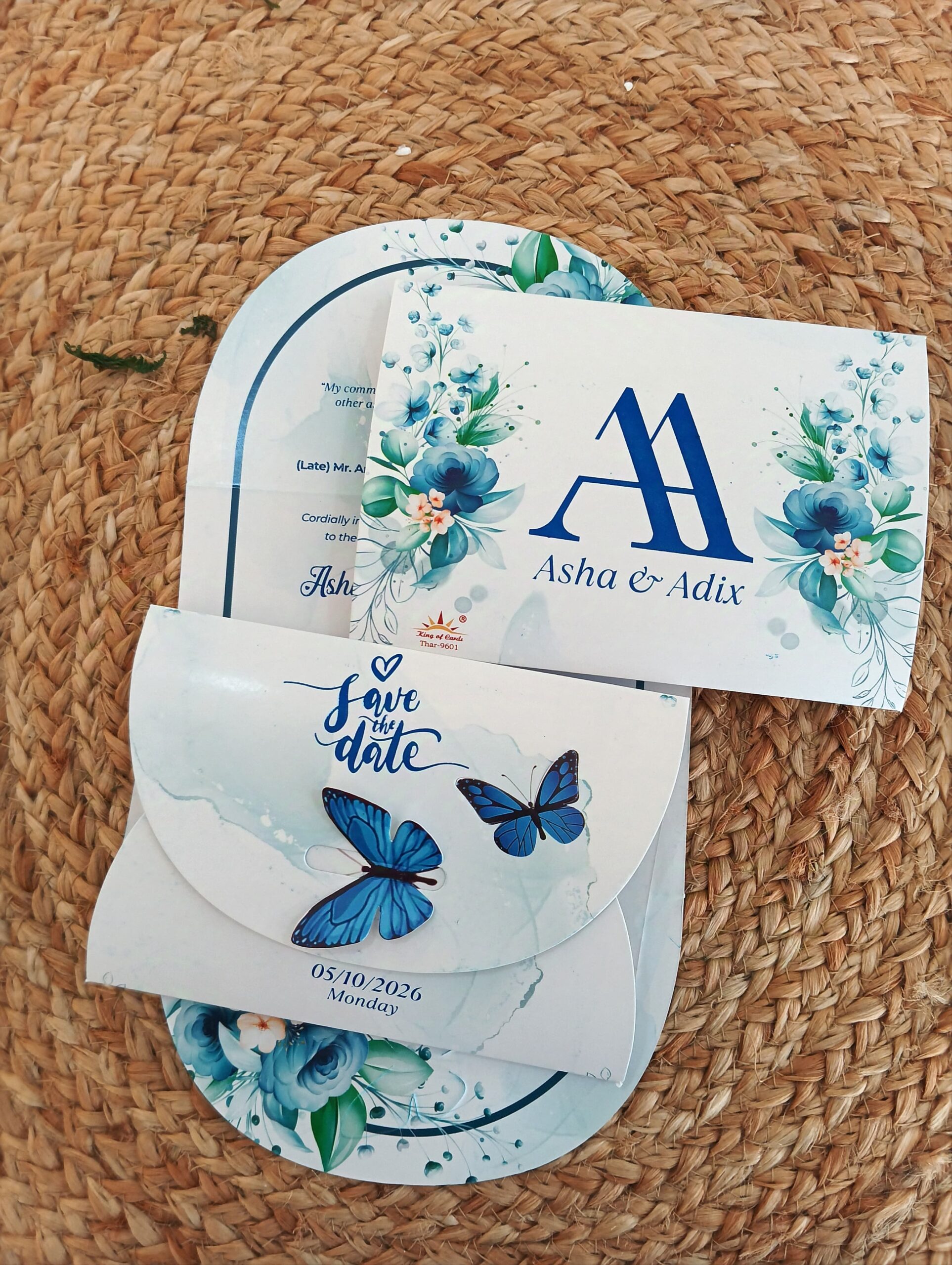 Elegant Blue Butterfly Theme Wedding Invitation Card