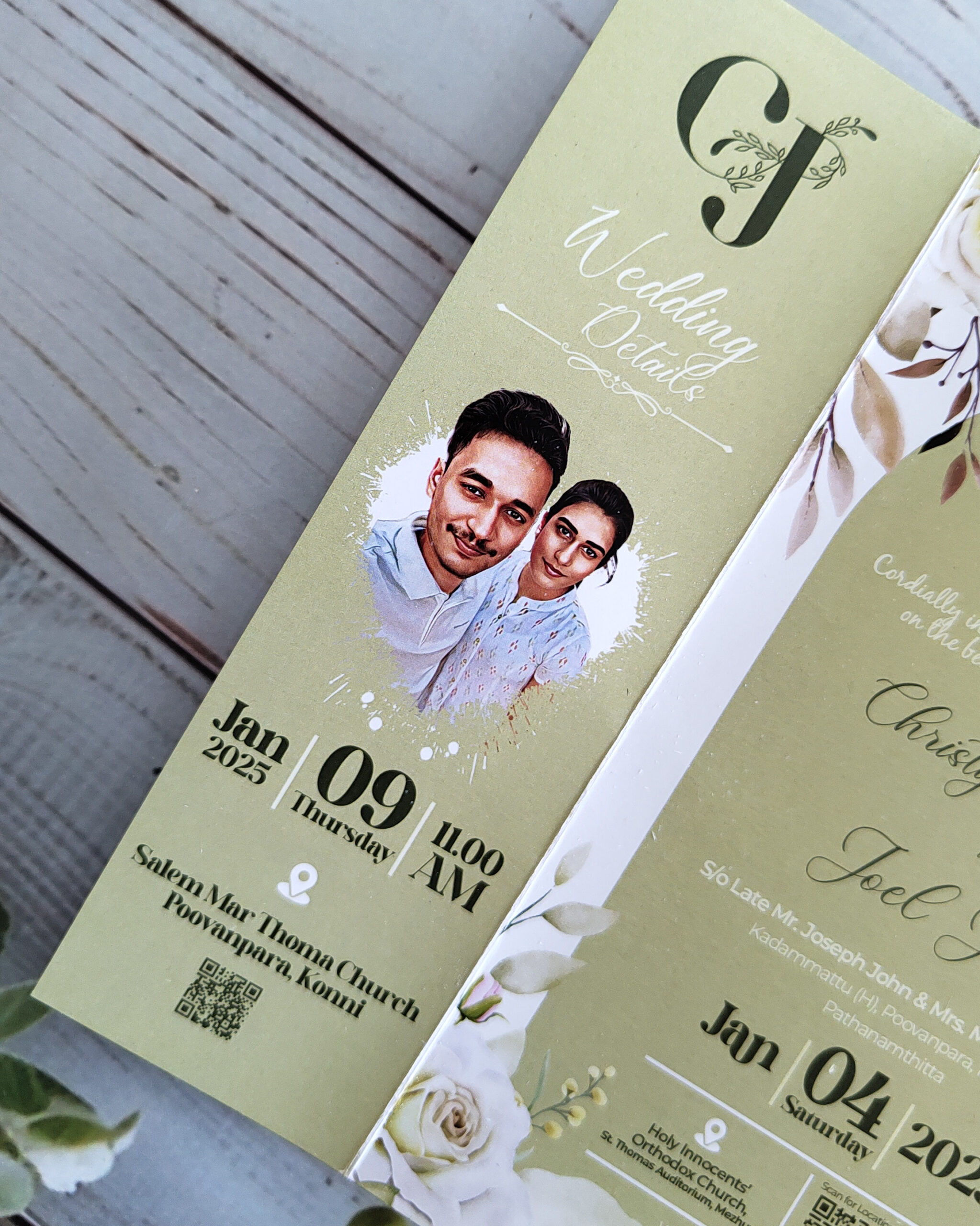 Elegant White Floral Tie Fold Christian Wedding Invitation Card
