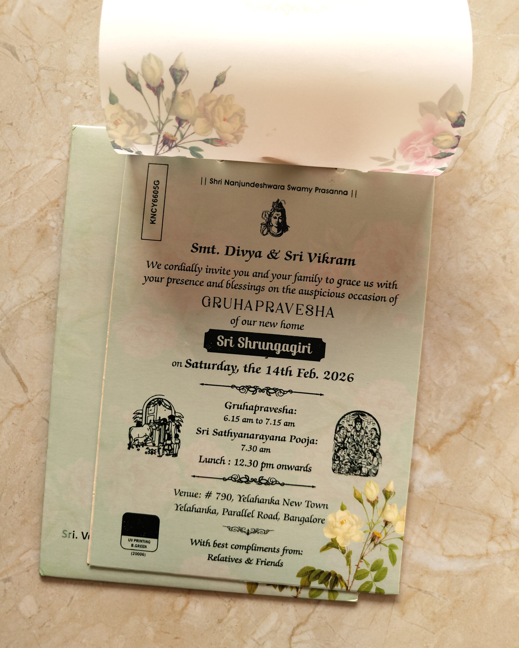Celebrate your wedding with elegance using this Green Floral Wedding Invitation Card, featuring delicate floral designs, a premium acrylic nameplate, and a matching envelope. Combining timeless charm with modern personalization, this invitation creates a sophisticated and memorable first impression for your special day.