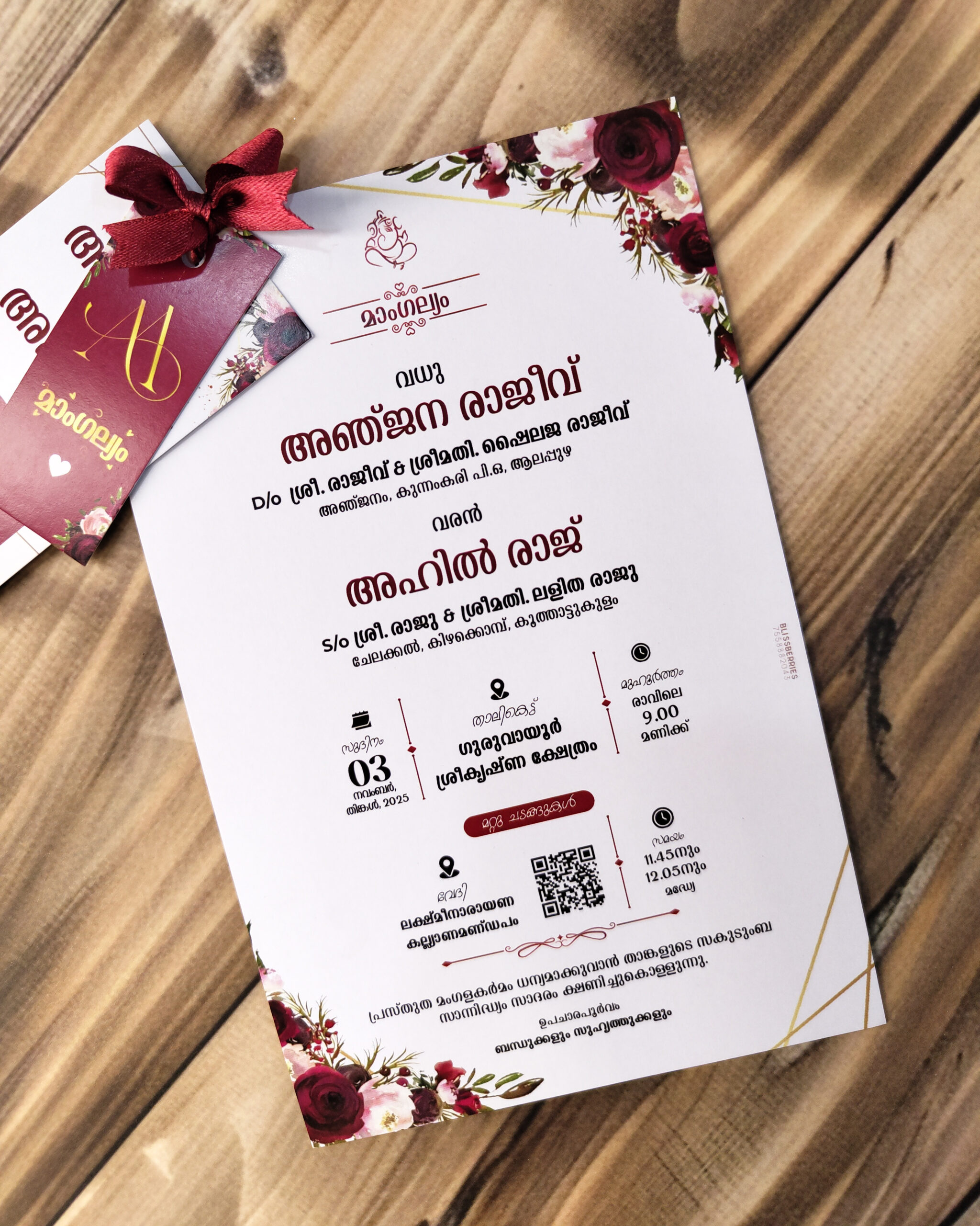 This regal 3 Layer Maroon Ribbon Hindu Wedding Invitation Card binds deep maroon layers with a luxurious satin ribbon, revealing traditional motifs and personalized details for auspicious vivah ceremonies. The rich maroon shade symbolizes prosperity and tradition, ideal for grand Indian shaadi events with customizable inserts. Blissberries crafts it using quality  papers for a tactile, culturally resonant luxury experience.​